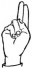 На ћирилици написано САНДРА ГРАБИЋ састоји се из 12 слова [?]. Исписано ћириличном једноручном азбуком за глувонеме: